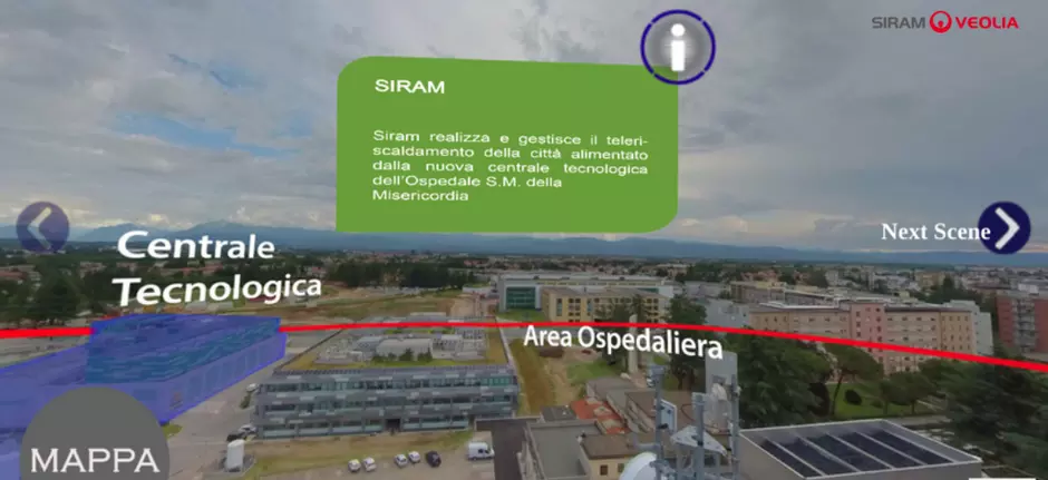SiramX è un’applicazione in realtà virtuale, sviluppata da un team di dipendenti Siram Veolia, che consente di navigare, da remoto, in ambienti reali tridimensionali, interagendo con il contesto in maniera immersiva e formativa.